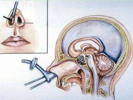 经鼻蝶垂体瘤切除手术示意图